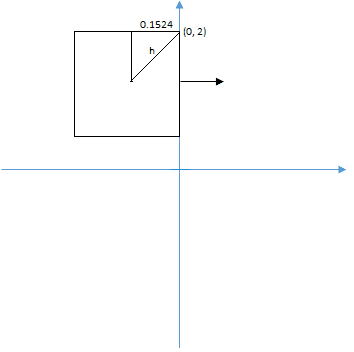 The example that I have been using is that the square is at (0,2), has 0 orientation, and the distance to the center from the corner is 0.1524m in the x and y directions (Picture given).
