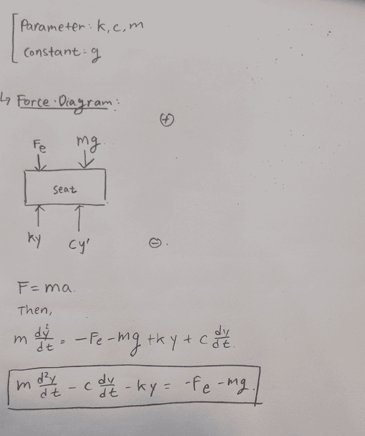 coefficient with c. Write a mathematical model for the driver seat-shock absorber system. What