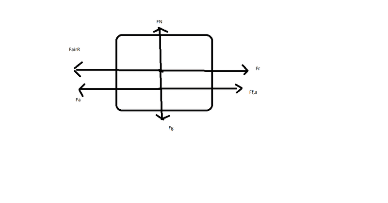 Mc = 1450-kg, Mt =454-kg, FairR = 7471N[backward], a = 0.225m/s^2[forward], Δm = Mc + Mt, Ff,s = ?
