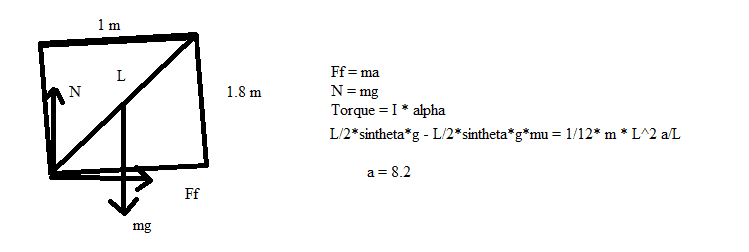 A truck is loaded with a large box, which is a uniform rectangular solid 1.8 m tall, 1.0 m wide, and 1.2 m deep.