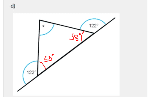 Now you have a triangle with interior angles 58 degrees, 58 degrees, and x.
