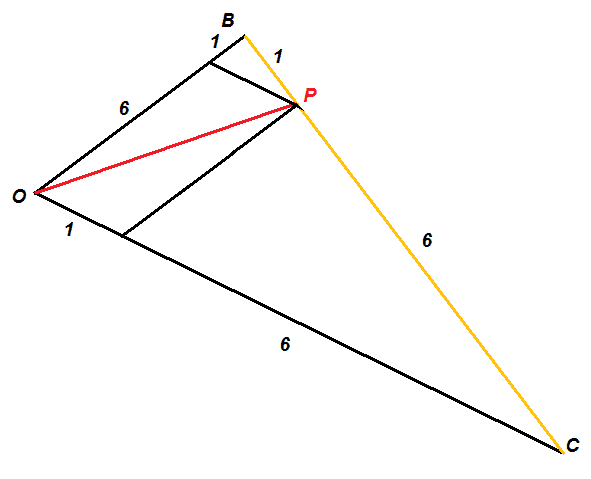 The discussion revolves around finding the point P that divides the segment between points B and C in a specific ratio, specifically where the ratio of distances from B to P and P to C is 1:6. Participants explore various methods to determine the coordinates of P, including algebraic approaches and geometric interpretations.