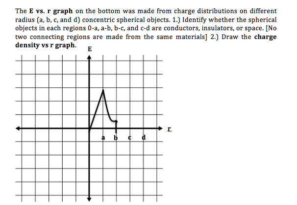 From 0-a it seems that the electric field of the spherical object is increasing, so I'd say it's an insulator. From a-b there is a drop of 1/r graph...so imagining that we are far away the e-field would approach zero, so I'd say it would be "space"---that is what they meant by space right?--(nothing present/no material)