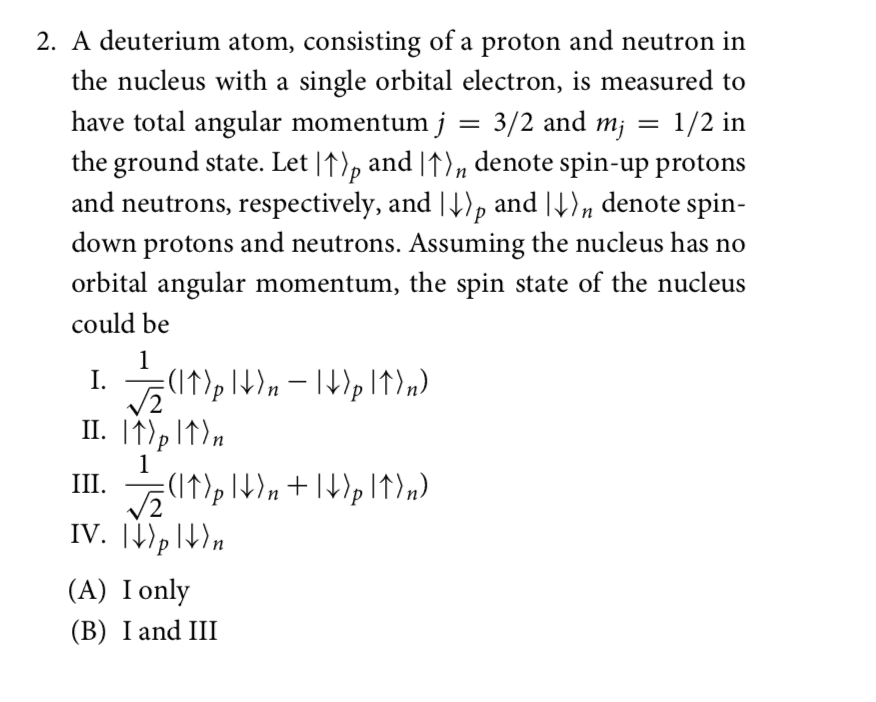 How do I understand spin in quantum mechanics for Physics GRE question 2?