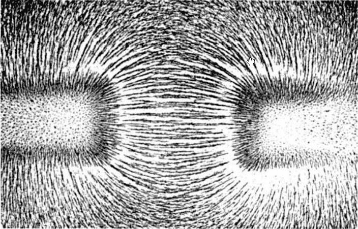 I understand the iron fillings become little magnets all pointing in the same north south direction similar to the spin aligned electrons in the permanent magnet.