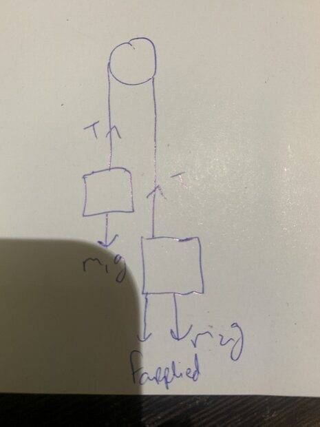 The discussion is ongoing, with participants providing insights and questioning assumptions about the equations and concepts involved. Some guidance has been offered regarding the analysis of forces and the role of tension, but there is no explicit consensus on the best approach or understanding of the problem.