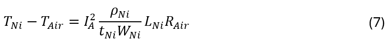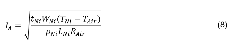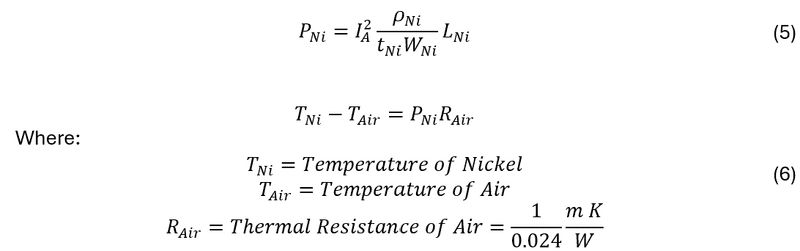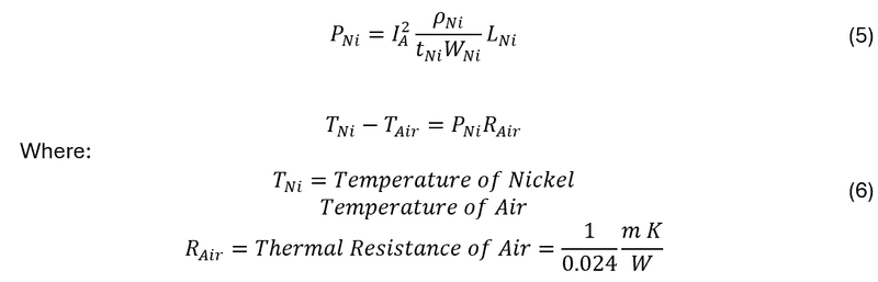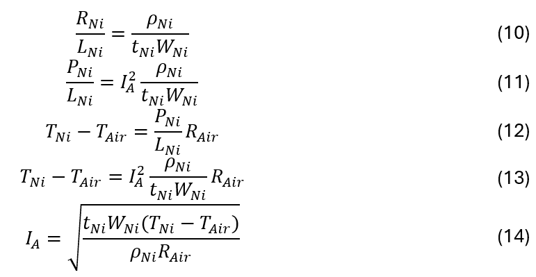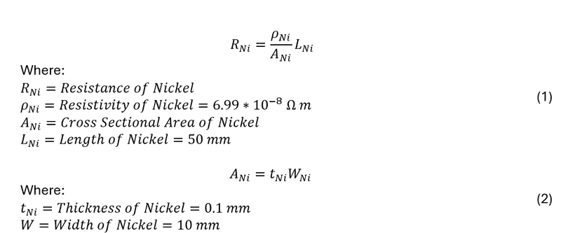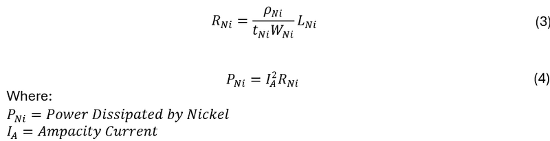 - Calculate the ampacity of a nickel strip with thickness of 0.10 mm, width of 10 mm, and length 50 mm, assuming a DC current.