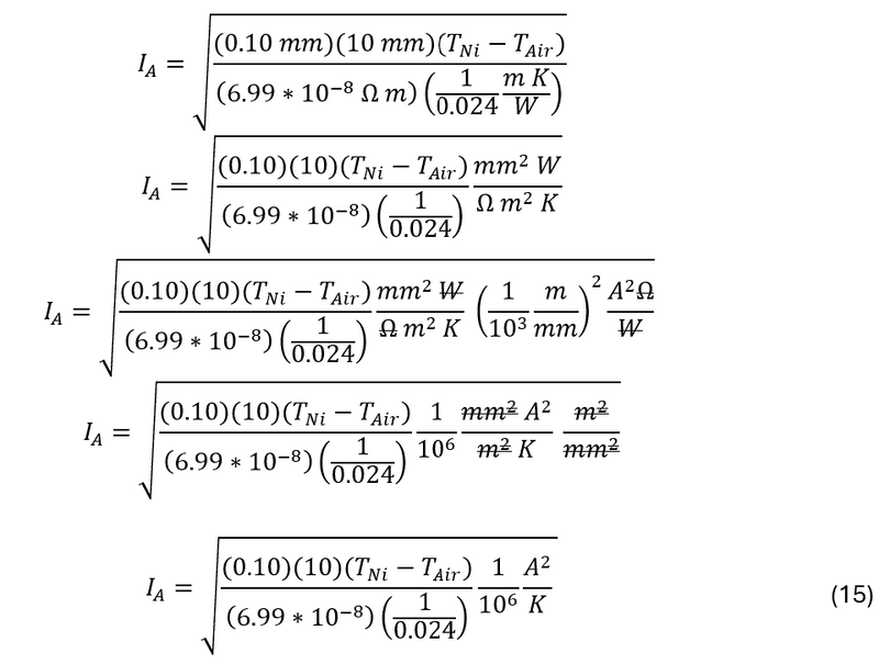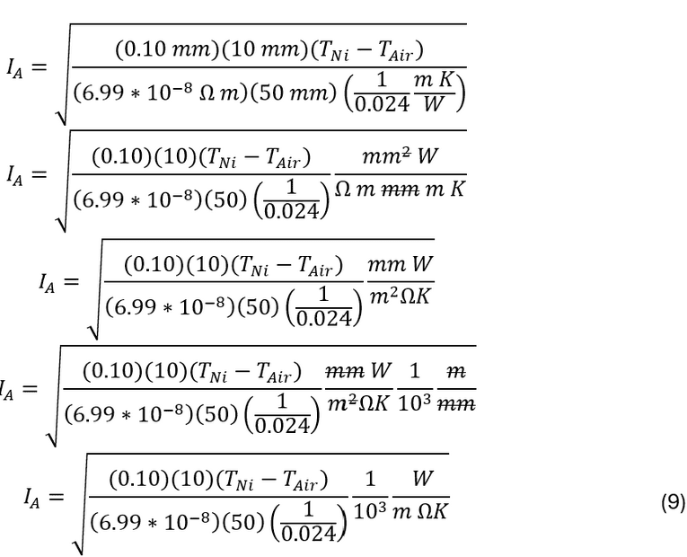 Looking online, ampacity does not care about the length of material. This would explain why the units do not work out. I now have based on the previous equations, Equation 10-14 taking this into consideration.