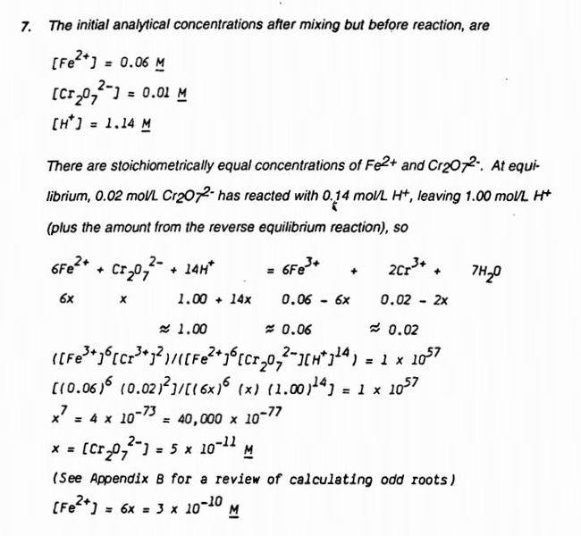 of the iron and chromium species if 10 mL each of 0.02M K2Cr2O7 in 1.14M HCl and 0.12M FeSO4