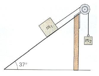 mass 1 is 2.0 kg, the static and kinetic coefficients of friction are .30 and .20 respectively.a) What is mass 2 if it travels uniformly upward?