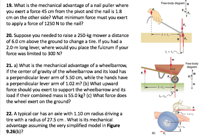 - Participants are attempting to apply the mechanical advantage equation but express confusion regarding the relationships between the forces and distances involved. Questions about the geometry of the nail puller and the role of torque are raised, along with requests for clarification on variable definitions.