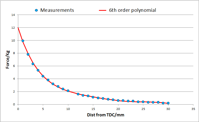 - A participant mentions that the force at BDC is negligible and provides additional force measurements for distances beyond the initial data.
