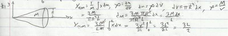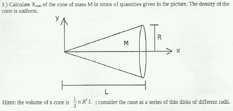 Calculate the X_com of the cone of mass M in terms of quantities given in the picture. The density of the cone is uniform.