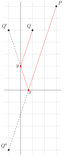 P=(3,7),Q=(1,5) ,A=(x,0),B=(0,y)