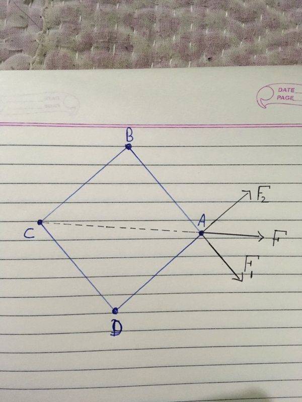 There are four homogeneous rods. Each rod has mass ##m## and length ##b##. The ends of the rods are connected by frictionless hinges such that the rods form a rhombic frame (see the picture). This frame is shaped as square ##ABCD## and put at rest on a smooth horizontal table. Then one applies a force ##F## to the hinge ##A## along the diagonal #AC#. Find acceleration of the point ##C## right after the force has been applied.