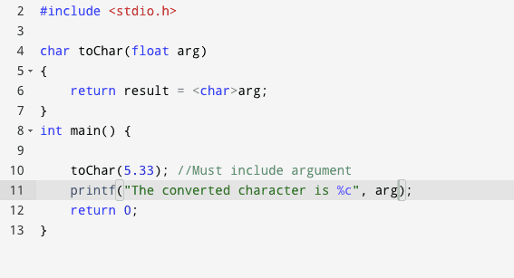 The discussion revolves around converting a float to a char in C programming, specifically focusing on how to implement this conversion within a function. Participants explore various approaches, including the use of type casting and the implications of returning a char from a float parameter.