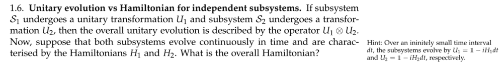 ## |\phi_1 \phi_2> = (1- i H_1 \ dt) | \phi_1(0)> \otimes \ (1- i H_2 \ dt) | \phi_2(0)> ##