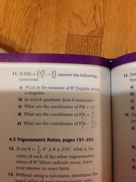 The discussion revolves around a trigonometry problem related to polar coordinates and transformations between polar and Cartesian coordinates, specifically focusing on question 11, part c. Participants are exploring how to find coordinates after a rotation, particularly the implications of flipping x and y values and the signs associated with them.