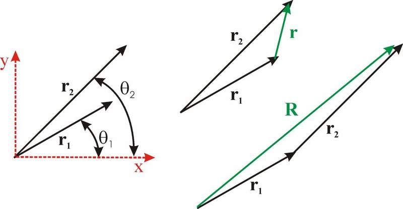 The discussion revolves around finding the magnitude of the resultant vector R formed by the addition of two vectors r1 and r2, given their magnitudes and angles relative to the x-axis. The original poster seeks clarification on how to arrive at the magnitude of R.