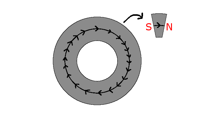 I require a special kind of magnet to complete my project, a magnet that the flux field lines continuously go around clockwise or counter-clockwise. Very similar to the magnets that were used in the REALLY old computers to store memory (I learned that in my set of old encyclopedias :D). I have a "donut" magnet that is the correct size and shape, except the flux lines act like a regular magnet (like a disc magnet with a hole in the center :P), in my project, this magnet is practically un-usable because of this (inconvenient) fact. I do not have such a magnet that the flux lines continuously go around, so I either need to make one or buy one :P