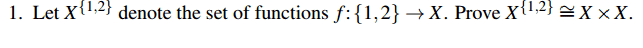 The discussion revolves around proving that a function is isomorphic to the Cartesian product of a set X. Participants express confusion about the initial steps required to demonstrate that a function is one-to-one and onto, which are necessary conditions for isomorphism.