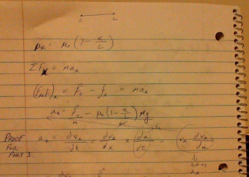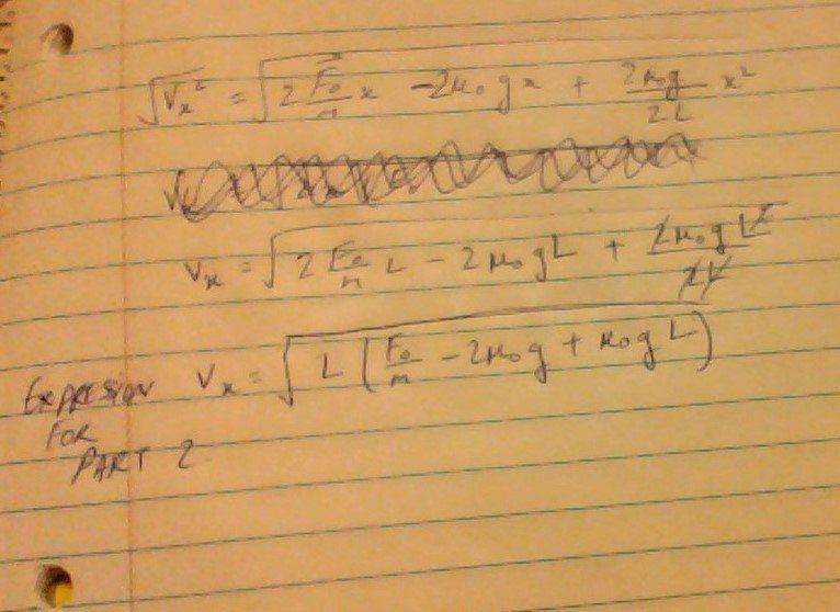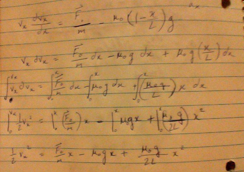 surface whose coefficient of kinetic friction is μk = μ0(1 - x/L).