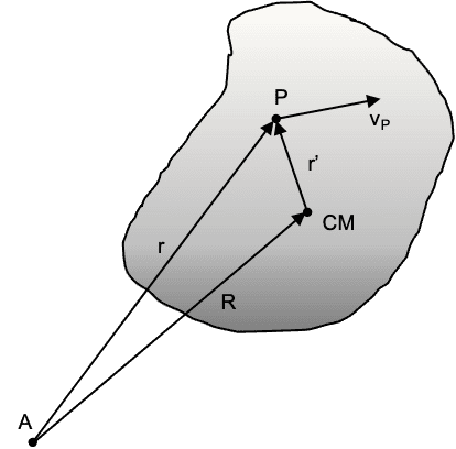 of the center of mass, depends on the choice of reference point A. The second term, angular momentum