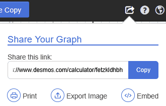 Click on the "share" icon at the top of the embedded framerobphy said:Is there a way to make a link (maybe as an icon) to the original desmos-URL?