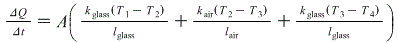 [tex]\frac{\Delta Q}{\Delta t} = kA\frac{T_{1} - T_{2}}{l}[/tex]