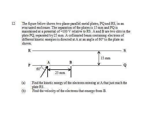 Therefore the kinetic energy it must possesses to reach the plate RS is 1.6 *10^-17 J.