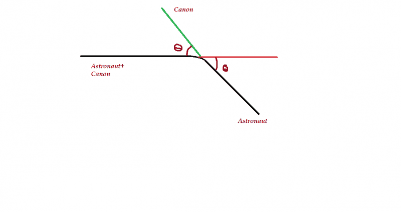 An astronaut in space weights 100 kg and is holding a cannon which can shoot a 10kg cannonball. The astronaut is moving at 10 m/s. The astronaut wishes to fire the cannonball such that he turns the maximum possible angle. Find this angle in degrees.