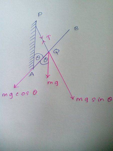 There is a mention of a potential misunderstanding regarding the center of mass and the placement of forces, which may affect the analysis of the system. The original question specifies the need to find the angle between PA and AB, which remains unaddressed.