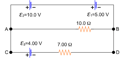 And then, for the second loop 4V - I*7ohm - I*10ohm = 0. That circuit would be 0.235 A.