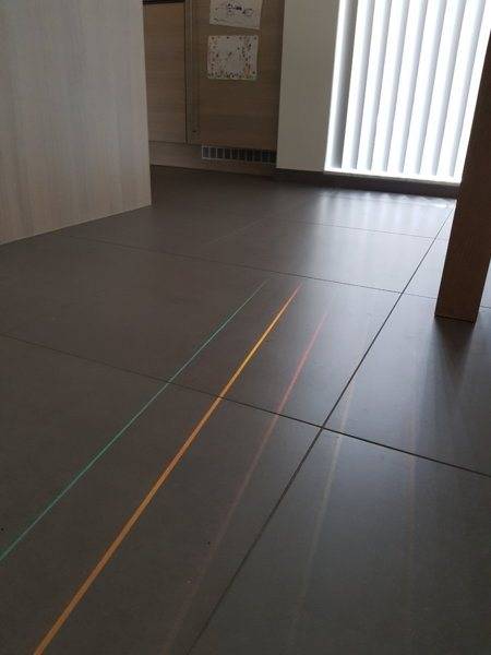 The discussion revolves around the phenomenon of light splitting into colors observed on the floor, with participants exploring the potential causes and mechanisms behind this effect. The scope includes concepts of light dispersion, the interaction of light with materials, and the geometry of light paths.