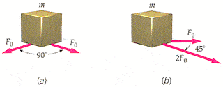 A force F0 causes an acceleration of 20 m/s2 when it acts on an object of mass m sliding on a frictionless surface. Find the magnitude of the acceleration of the same object in the circumstances shown in each figure below.