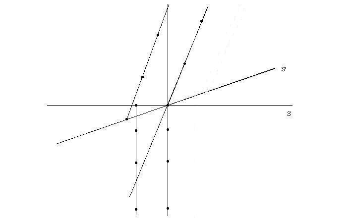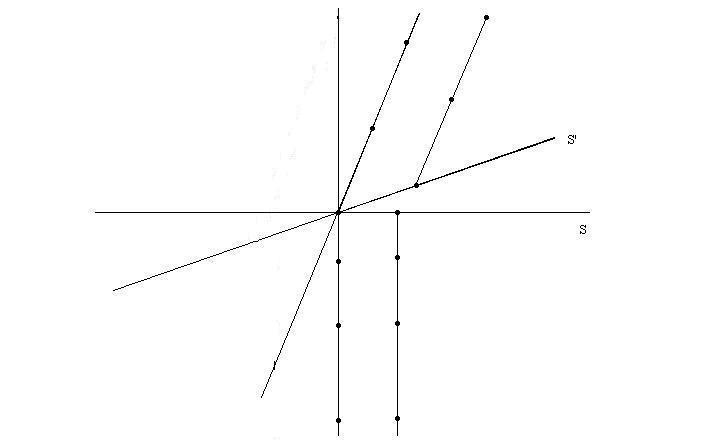 Now, at t=0 the object starts moving to right with respect to B observer. Now the long object is at rest in S' frame and moving relative to S frame.