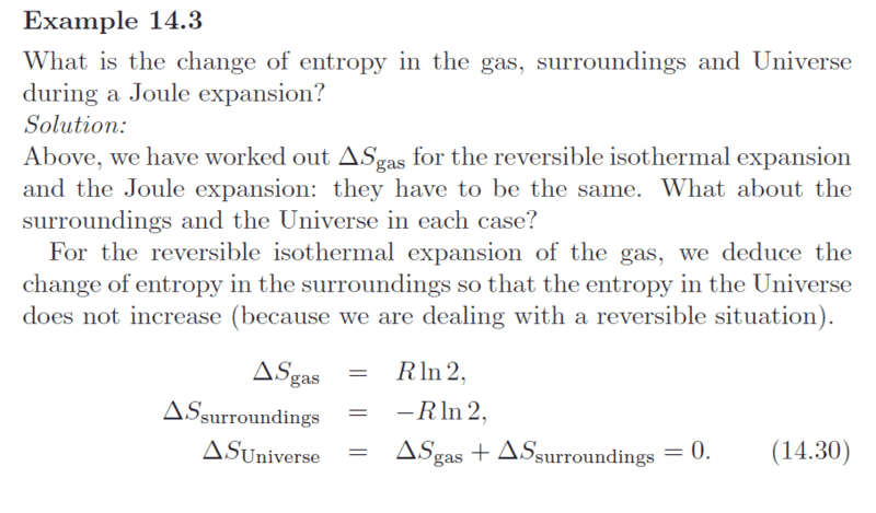 There are references to specific equations and examples that have not been fully included in the discussion, which may affect the clarity of the arguments being made. Participants are also navigating the complexities of thermodynamic states and their implications for entropy changes.