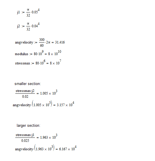 Attached is my working, i can arrive at the answer of 31.4KW for the pulley at C at the smaller diameter step, however when i try the same calculate with the second moment of area (J) for the larger diameter i get an answer in excess of 60000KW. How would i calculate the torque for the larger diameter section?