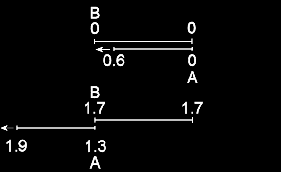 Thus it only takes 1.33 yrs for the right sausage clock and left pastry clock to meet. During which time, the pastry clocks run at a rate 0.8 that of the sausage clocks and advance 1.07 years, and since the left pastry clock started at 0.6 years, it reads 1.67 years upon reaching the right sausage clock.
