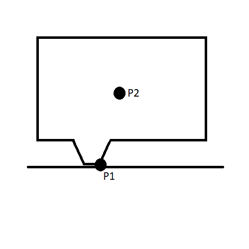 So I have 2 Points P1 and P2. P2 is the center of mass which has an X and Y coordinate. P1 is where I think that it will fall over from and only has an X location.