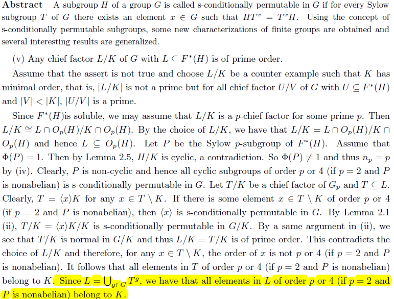How did the author get that all the elements of order p or 4 of L are contained in K? I mentioned the abstract but I do not think there is a need for that.