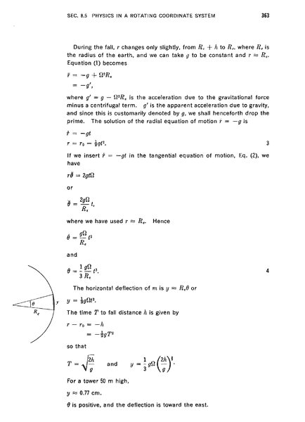 In case of the rotating Earth, before the ball reaches to the Earth's surface, the point marked by B will have moved ahead and so it will fall on another point of the Earth's surface.To a person on the earth, it will appear as a deflection in the motion of mass.