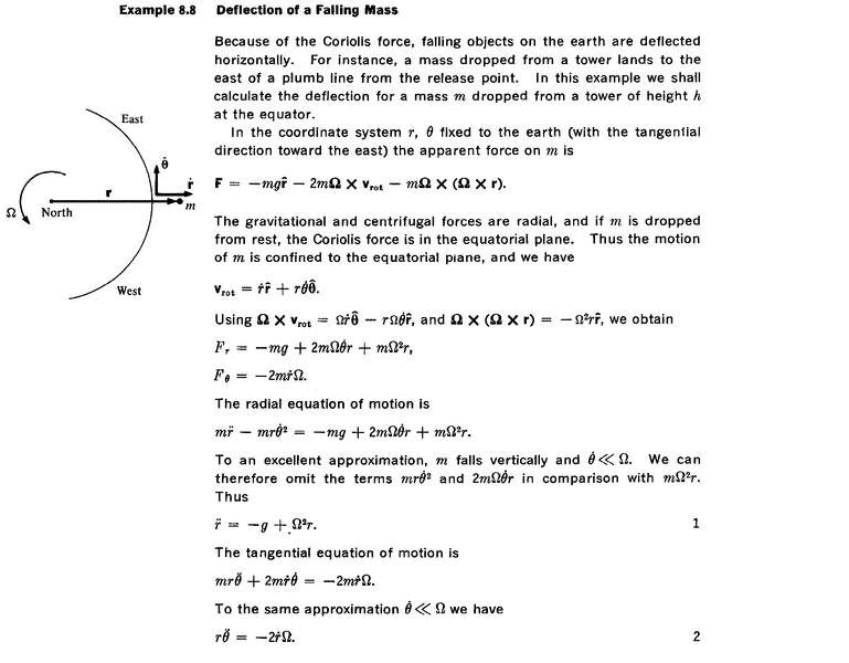 Because of the Coriolis force, falling objects on the Earth are deflected