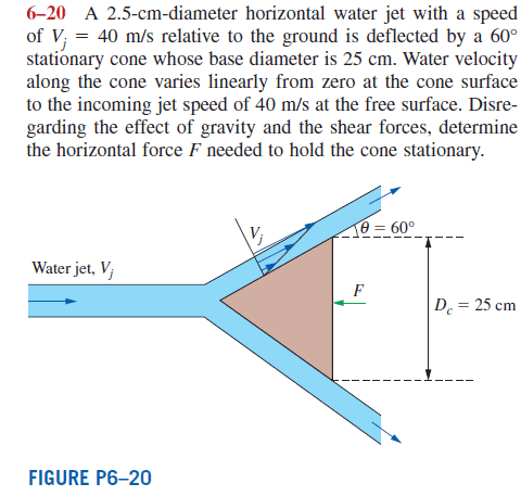 I have tried using the equation of conservation of momentum on this problem but I'm getting stuck at how the viscous force of the liquid is playing a role in this problem. In addition, would I take in affect that the force of the liquid that is applied on the cone is applied throughout the whole area of the cone, therefore, meaning that I need to find the area of the surface of the cone that the liquid is acting upon?