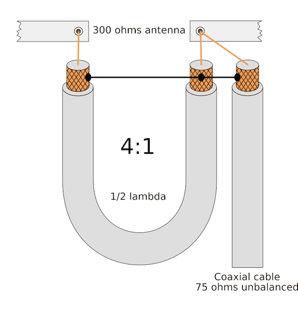 A folded dipole in a Yagi setup apparently has an impedance of 10-40 ohm. The signal must pass to 75 ohm coax. So there must be a step-up impedance match, and a bal-un transformation.