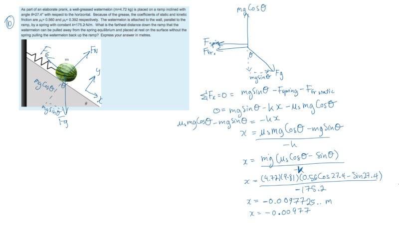 x=(mg(μsCosθ-Sinθ))/(-k)
