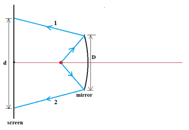 The discussion revolves around a problem involving a projector that uses a point light source and a concave spherical mirror. Participants are trying to determine the appropriate distance from the mirror to position the light source, considering the geometry and optics involved.