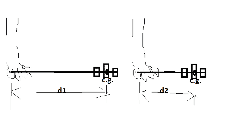 ΣM = m1*d1² + … + mn*dn² = 200kg *(1’5m)²+50kg*(0’8m)²= 482kgm²
