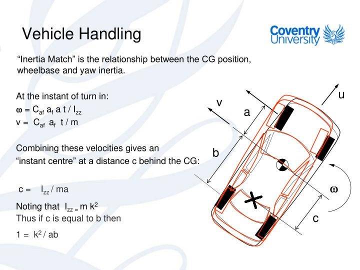 The location of the poles of inertia influences not only the car’s nimbleness, but also the type of reactions it will have. A car will understeer if its masses are mostly in the front and will oversteer otherwise."