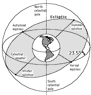 - There is a discussion about the relationship between the equatorial plane and the elliptical plane, particularly at the equinoxes.